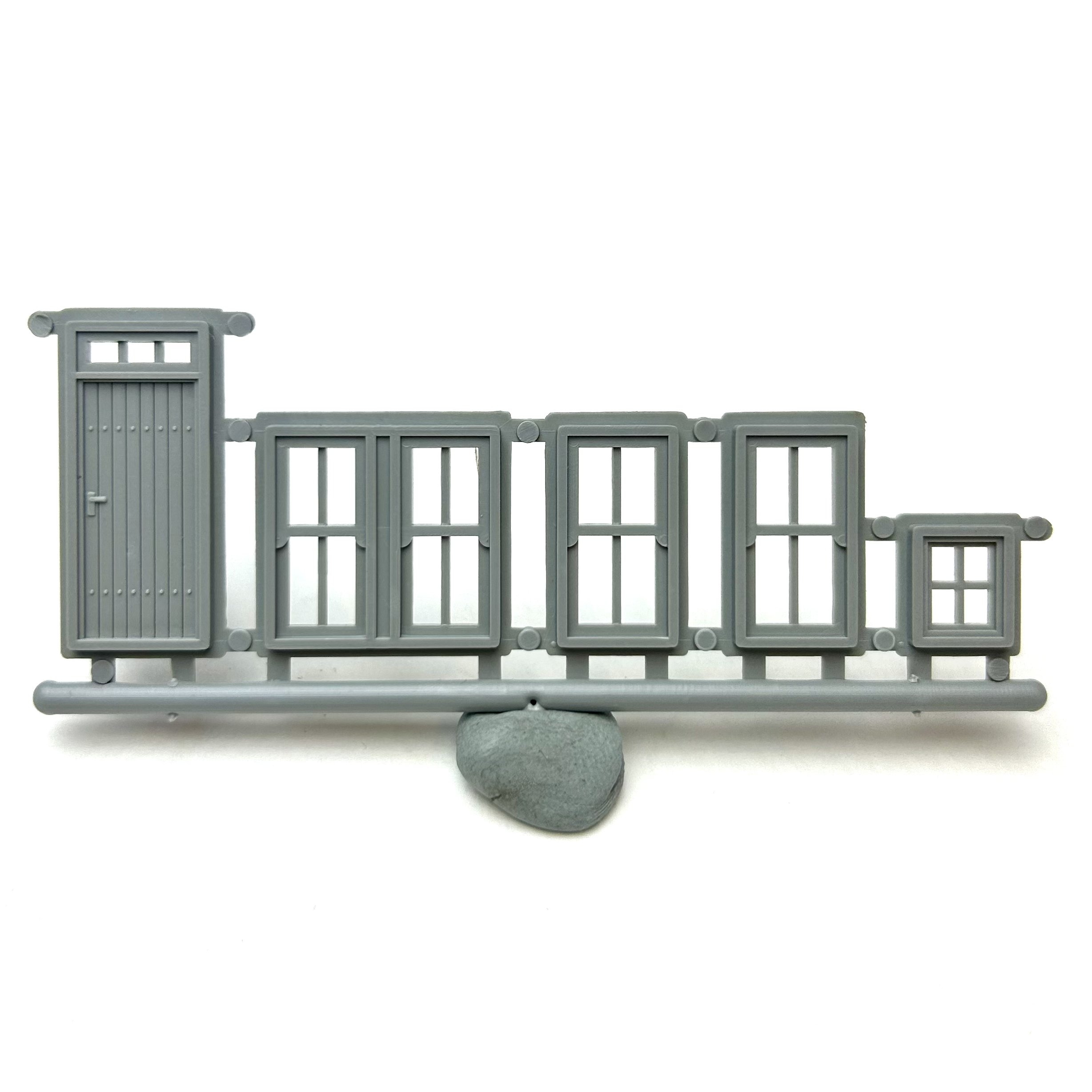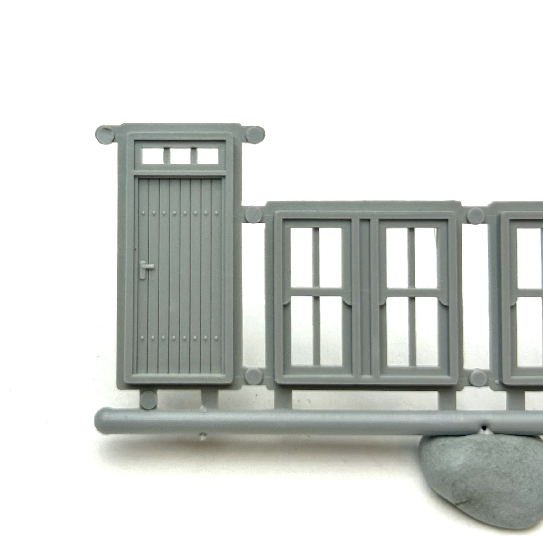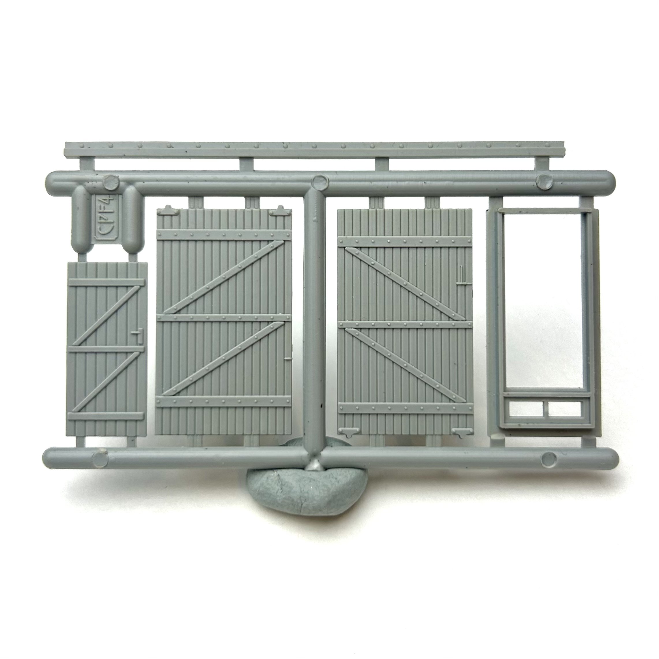 Plastic injection moulded small workshop or garage sliding door for use in scratch building model railway structures. Can be used for various types buildings and structures such as a goods shed