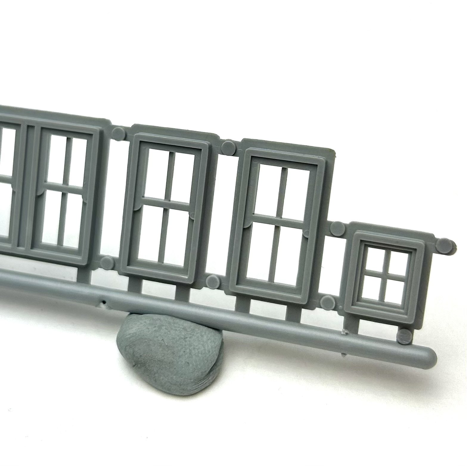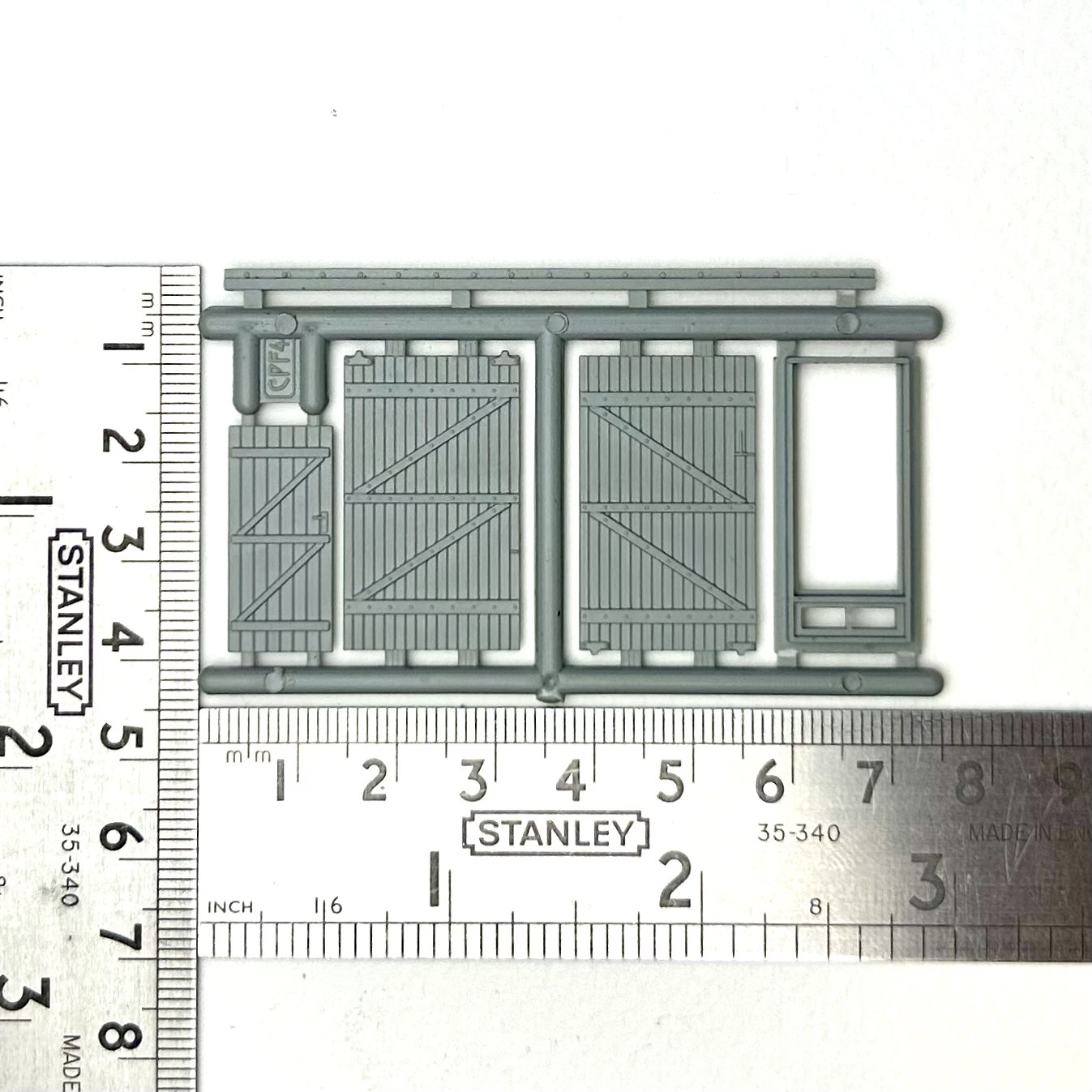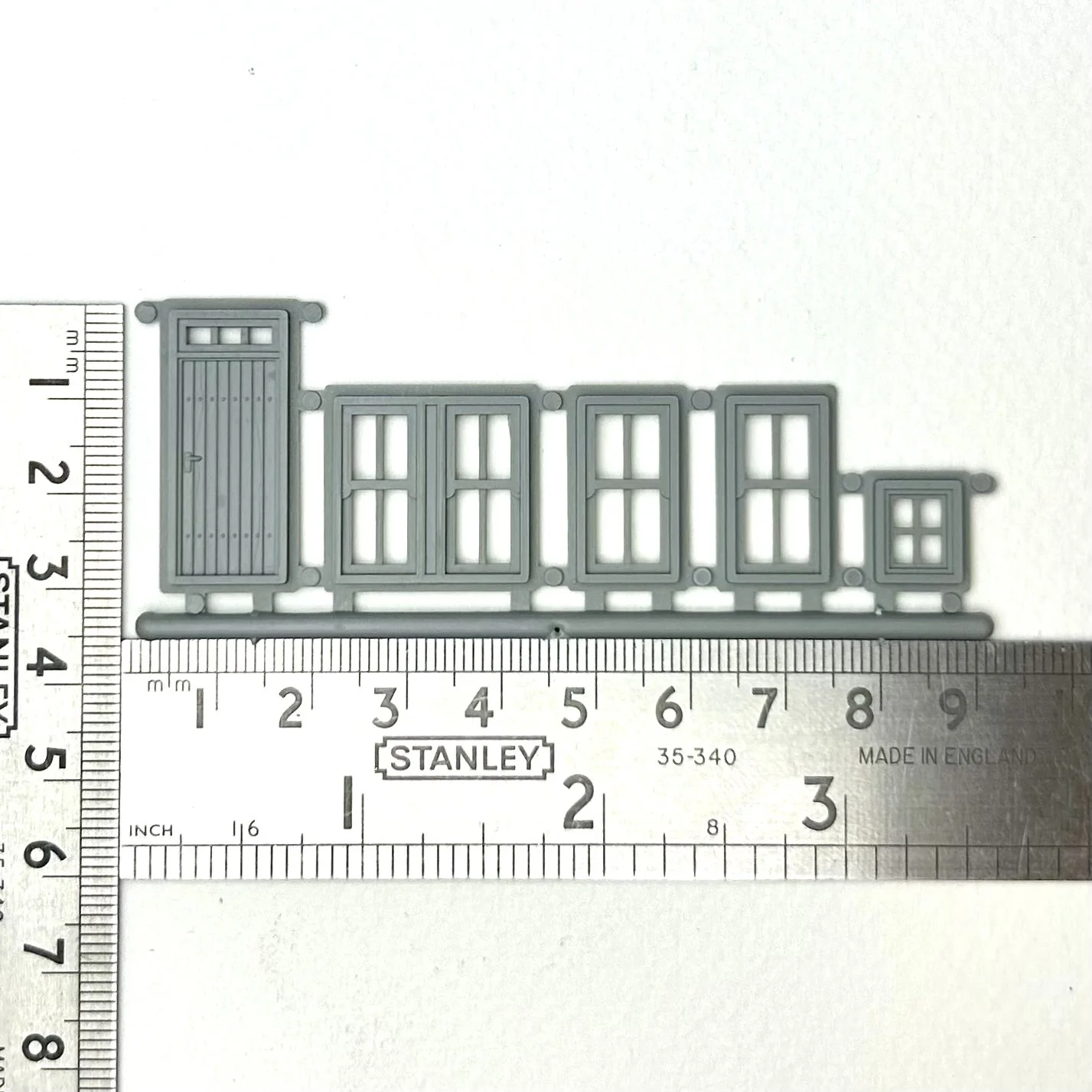 Plastic injection moulded small workshop or garage sliding door for use in scratch building model railway structures. Can be used for various types buildings and structures such as a goods shed